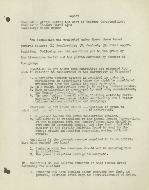 The IAWS was interested in ways that the organization could help women students achieve the best college experience from their university. At many of the regional conventions and through correspondence surveys throughout the year, the IAWS asked questions like: