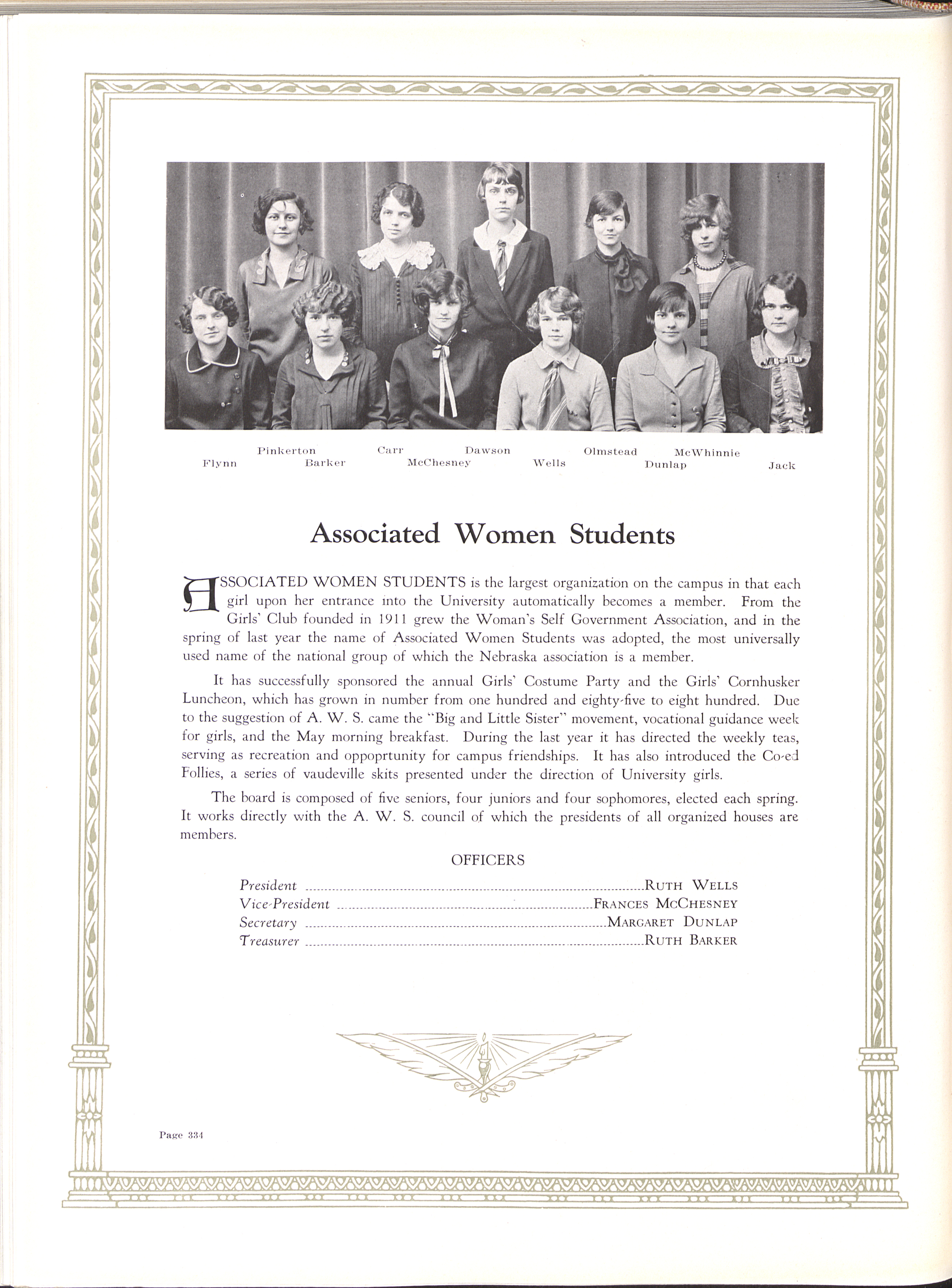 - This is the page for the Associated Women Students in the 1926 Cornhusker Yearbook.