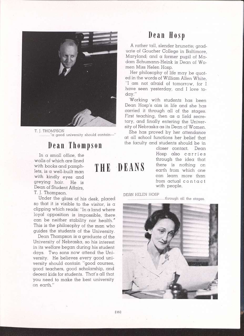 Dean of Women, Helen Hosp in the 1941 Cornhusker yearbook.