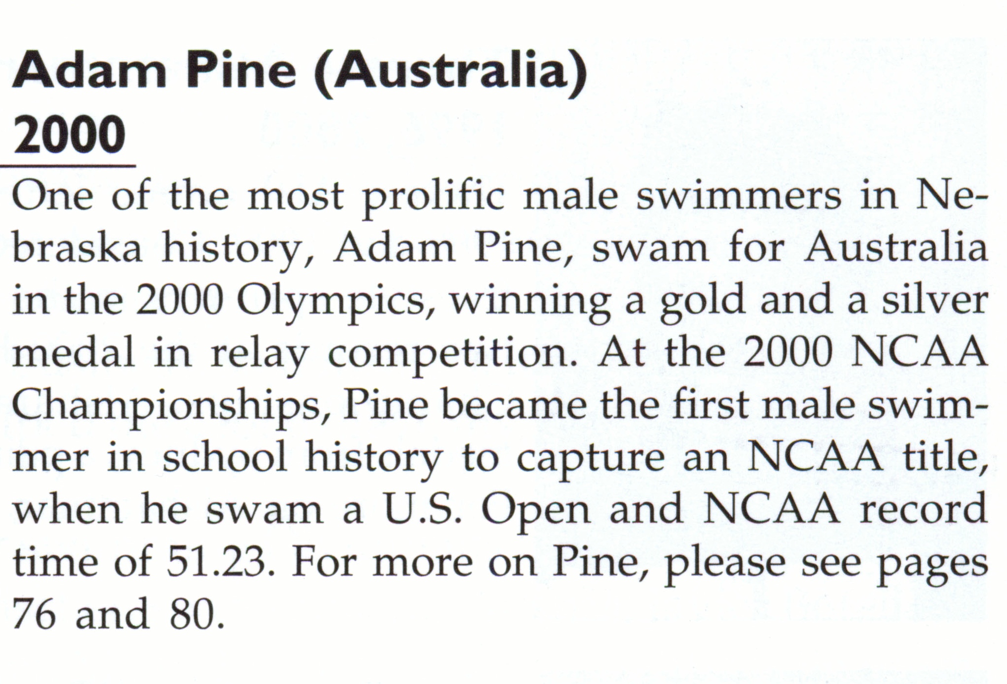- A picture of Olympian Adam Pine from his days at the UNL Swimming Team.