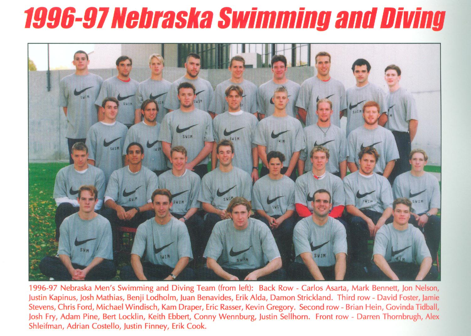 - This is a photograph of the 1996 UNL Men's Swimming and Diving Team. It was taken from a 1997 UNL Swimming brochure.