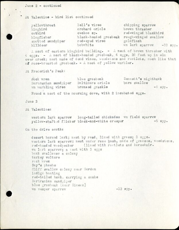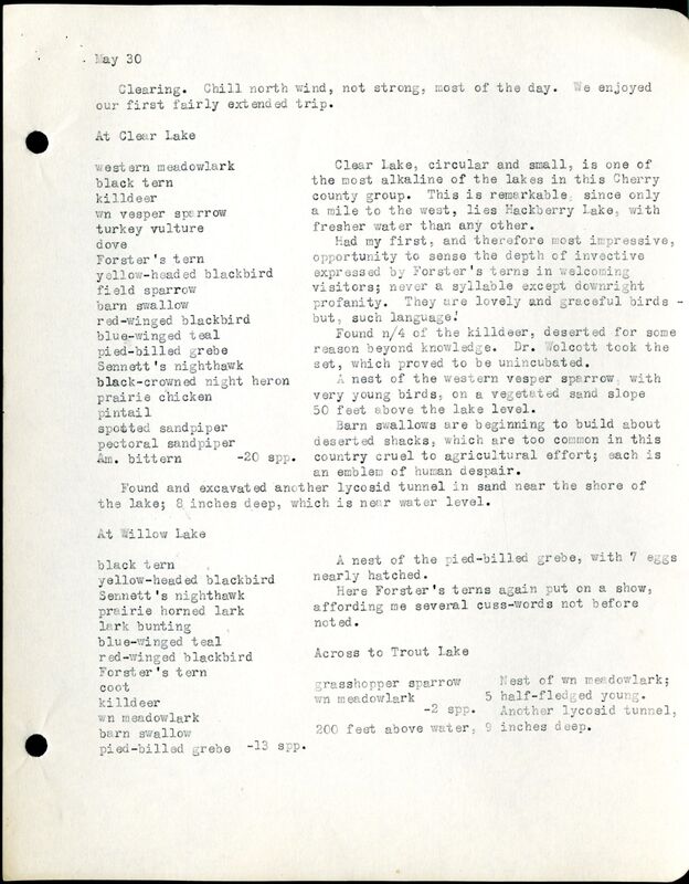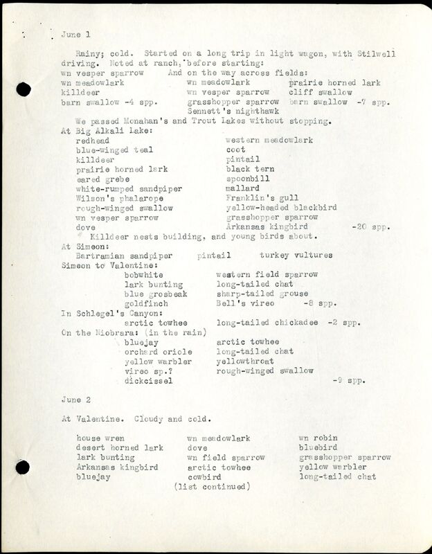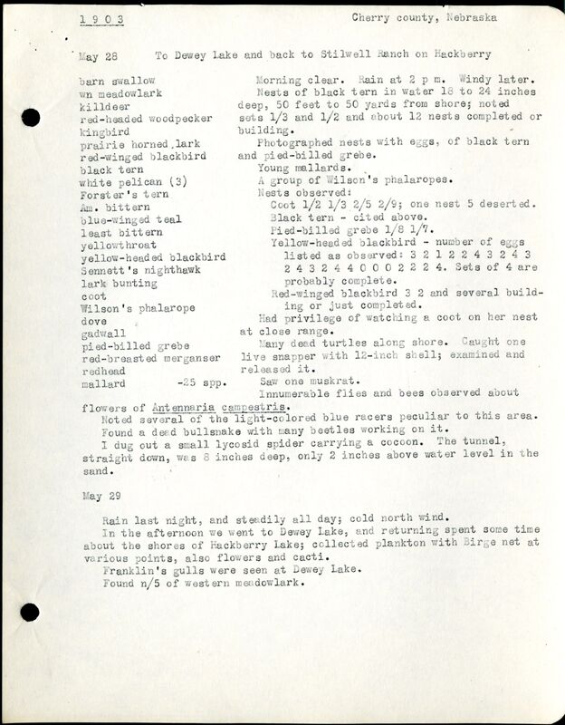 Frank H. Shoemaker Cherry County Bird List, 1903