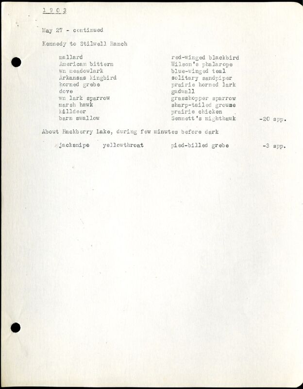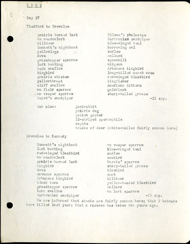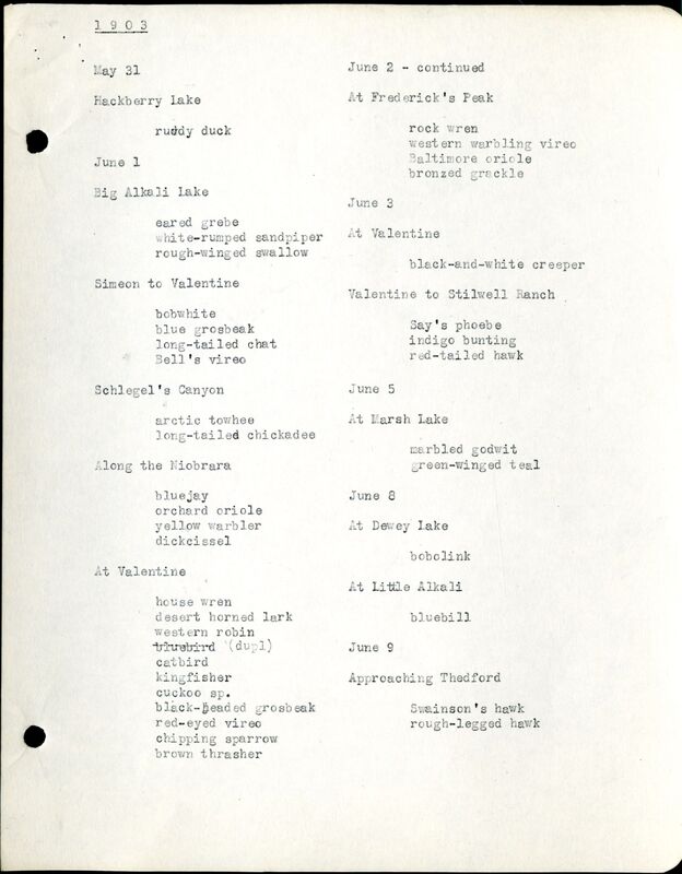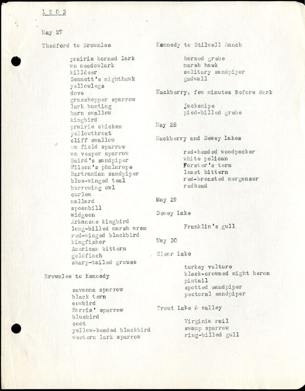 Cherry County Bird List, 1903