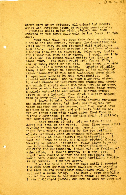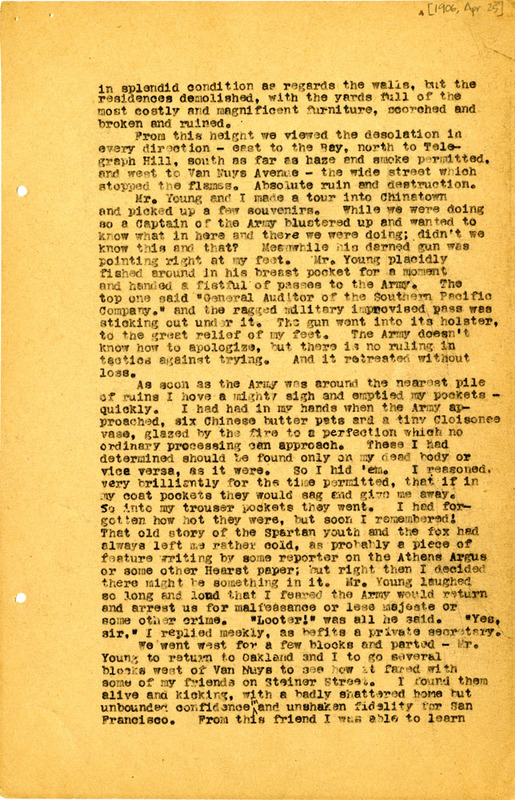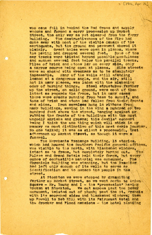 day in Oakland and regularly visited San Francisco until he left on May 1, 1906.[1] He described the earthquake as “a sad affair compared with others; the desolation