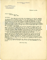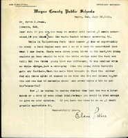 Letter, Lawrence Bruner to Joy Higgins, 1903, Feb. 18 Typewritten letter, 1 page, from Myron Swenk to Susie Callaway, "Thank you for the information…"