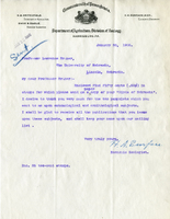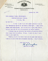 Letter, H.P. Attwater to Lawrence Bruner, 1905, Jan. 23 Typewritten letter, 1 page, from H.P. Attwater to Lawrence Bruner, "I beg to acknowledge with thank…"