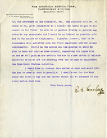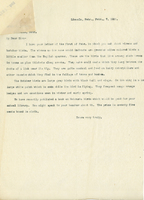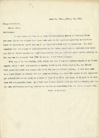 Letter, R. A. Cooley to Lawrence Bruner, 1905, Mar. 21 Typewritten letter, 2 pages , attached to Apr. 11, 1905, from R. A. Cooley to Lawrence Bruner, "I am writing this morning to ask…"