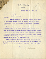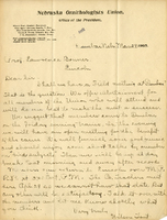 Letter, Lawrence Bruner to William Dutcher, 1905, Feb. 28 Typewritten letter, 1 page, from Lawrence Bruner to William Dutcher, "I am in receipt of your letter…."