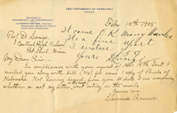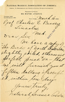 Letter, Natural Science Association to Charles Bessey, 1905, Mar. 16 Handwritten letter, 1 page, from Natural Science Association to Charles Bessey, "We have a copy….