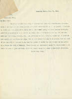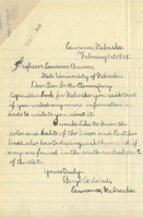 Letter, Lawrence Bruner to Beryl Laird, 1905, Feb. 7 Typewritten letter, 1 page, from Lawrence Bruner to Beryl A. Laird, "I have your letter fo the first of Febr…."