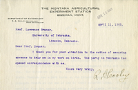 Letter, Jas Atkinson to Lawrence Bruner, 1905, Apr. 6 Typewritten letter, 1 page, from Jas Atkinson to Lawrence Bruner, "Your communication at hand…"