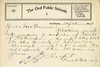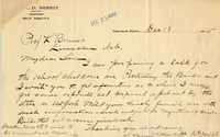 Letter, A.D. Nesbit to Lawrence Bruner, 1904, Dec. 18 Handwritten attached letter from A.D. Nesbit to Lawrence Bruner, "I am preparing a talk for the school children…"