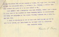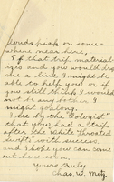 Letter, Chas. W. Metz to Lawrence Bruner, 1904, Sept. 21 Handwritten letter, 2 pages, from Chas. W. Metz to Lawrence Bruner, "I don't know just how to begin…"