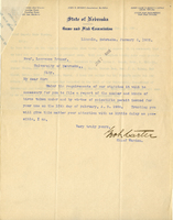 Letter, Geo. L. Carter to Lawrence Bruner, 1905, Jan. 6 Typewritten , attached to Jan. 7, 1905, from Geo. L. Carter to Lawrence Bruner, "Under the requirements of our statutes…"