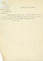 Letter, Lawrence Bruner to Game Warden, 1905, Jan. 19 Typewritten , attached to Jan. 7, 1905, from Lawrence Bruner to Game Warden, "As the time is approaching when birds begin to appear…"