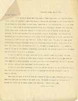 Letter, Lawrence Bruner to J.L. Sloanaker, 1904, Apr. 21 Typewritten attached letter from Lawrence Bruner to J.L. Sloanaker, "Your card of recent date addressed…"