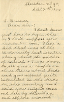 Letter, Chas. W. Metz to Lawrence Bruner, 1904, Sept. 21 Handwritten letter, 2 pages, from Chas. W. Metz to Lawrence Bruner, "I don't know just how to begin…"