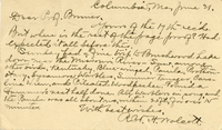 Letter, D. Ducells to Lawrence Bruner, 1904, May 14 Handwritten letter, 1 page, from D. Ducells to Lawrence Bruner, "Your kind favour of 3rd inst…"