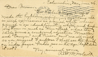 Letter, Robert Wolcott to Lawrence Bruner, 1904, June 26 Handwritten postcard from Robert Wolcott to Lawrence Bruner, "On the last page proof I made…"