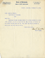 Letter, Geo. L. Carter to Lawrence Bruner, 1904, Feb. 10 Typewritten attached letter from Geo. L. Carter to Lawrence Bruner, "Replying to your esteems favor of the 8th…"