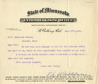 Letter, F.L. Washburn to Lawwrence Bruner, 1904, June 17 Typewritten letter, 1 page, from F.L. Washburn to Lawrence Bruner, "We are very much obliged…"