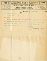 Letter, Lawrence Bruner to Barlett Richards, 1904, June 20 Typewritten letter, 1 page, from Lawrence Bruner to Barlett Richards, "Your favor of the 22nd instant along…"