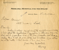 Letter, Lawrence Bruner to Myron Swenk, 1904, May 3 Typewritten attached letter from Lawrence Bruner to Myron Swenk, "Your letter of April 30th cam duly to hand…"