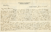 Letter, Robert Wolcott to Lawrence Bruner, 1904, June 10 Handwritten letter, 2 pages, from Robert Wolcott to Lawrence Bruner, "Proof received promptly and forwarded to Klopp…"