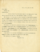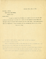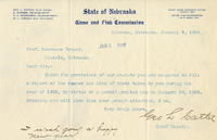 Letter, Lawrence Bruner to Geo L. Carter, 1904, Jan. 6 Typewritten letter, 1 page, from Lawrence Bruner to Geo. L. Carter, "In reply to yours of Jan. 25 asking…"