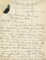 Letter, Joy Higgins to Lawrence Bruner, 1903, July 10 Handwritten letter, 1 page, from Joy Higgins to Lawrence Bruner, 2 pages, "I must beg your pardon for neglecting…"