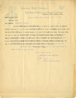 Letter, Lawrence Bruner to American Book Company, 1903, Nov. 6 Typewritten letter, 1 page, from Lawrence Bruner to American Book Co., "Several years ago…"
