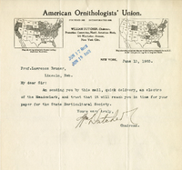 Letter, William Dutcher to Lawrence Bruner, 1903, Dec. 11 Typewritten letter attached to July 11, 1903, from William Dutcher to Lawrence Bruner, "I am in receipt of you favor..."