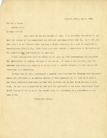 Letter, Lawrence Bruner to B.F. Feather, 1903, May 7 Typewritten , attached to May 4, 1903, from Lawrence Bruner to B.F. Feather, 1 page, dated May 7, 1903, "allow me to thank you for your prompt reply to my letter…"