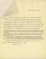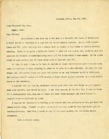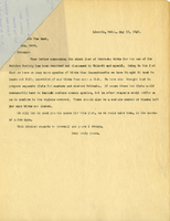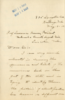 Letter, Lawrence Bruner to B.F. Feather, 1903, May 4 Typewritten letter, 1 page, from Lawrence Bruner to B.F.Feather, with handwritten note at bottom of letter from B.F. Feather, "You would greatly oblige me…."
