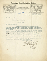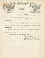 Letter, Elizabeth Van Sant to Lawrence Bruner, 1903, May 9 Typewritten letter, 1 page, from Elizabeth Van Sant to Lawrence Bruner, "I have been requested by the Audubon Society of Omaha…"