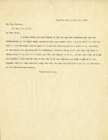 Letter, Lawrence Bruner to Elizabeth Van Sant, 1903, May 19 Typewritten letter, 1 page, from Lawrence Bruner to Elizabeth Van Sant, "As promised for a few days ago I now send you herewith the name of birds…"