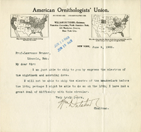 Letter, Lawrence Bruner to William Dutcher, 1903, June 18 Typewritten letter, 1 page, from Lawrence Bruner to William Dutcher, "I am in receipt of your favors of the 9th..."
