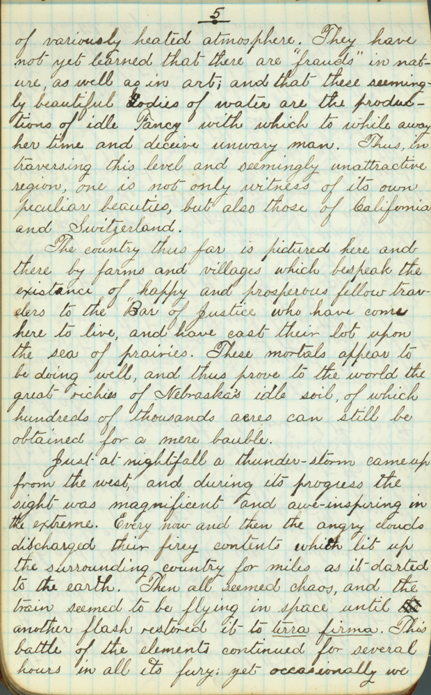 - Bruner’s handwritten notebook detailing a trip from Nebraska to Colorado, starting on a train from Omaha.