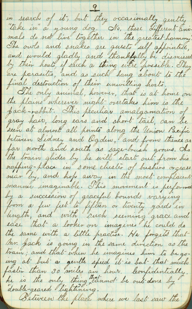 Bruner’s handwritten notebook detailing a trip from Nebraska to Colorado, starting on a train from Omaha.