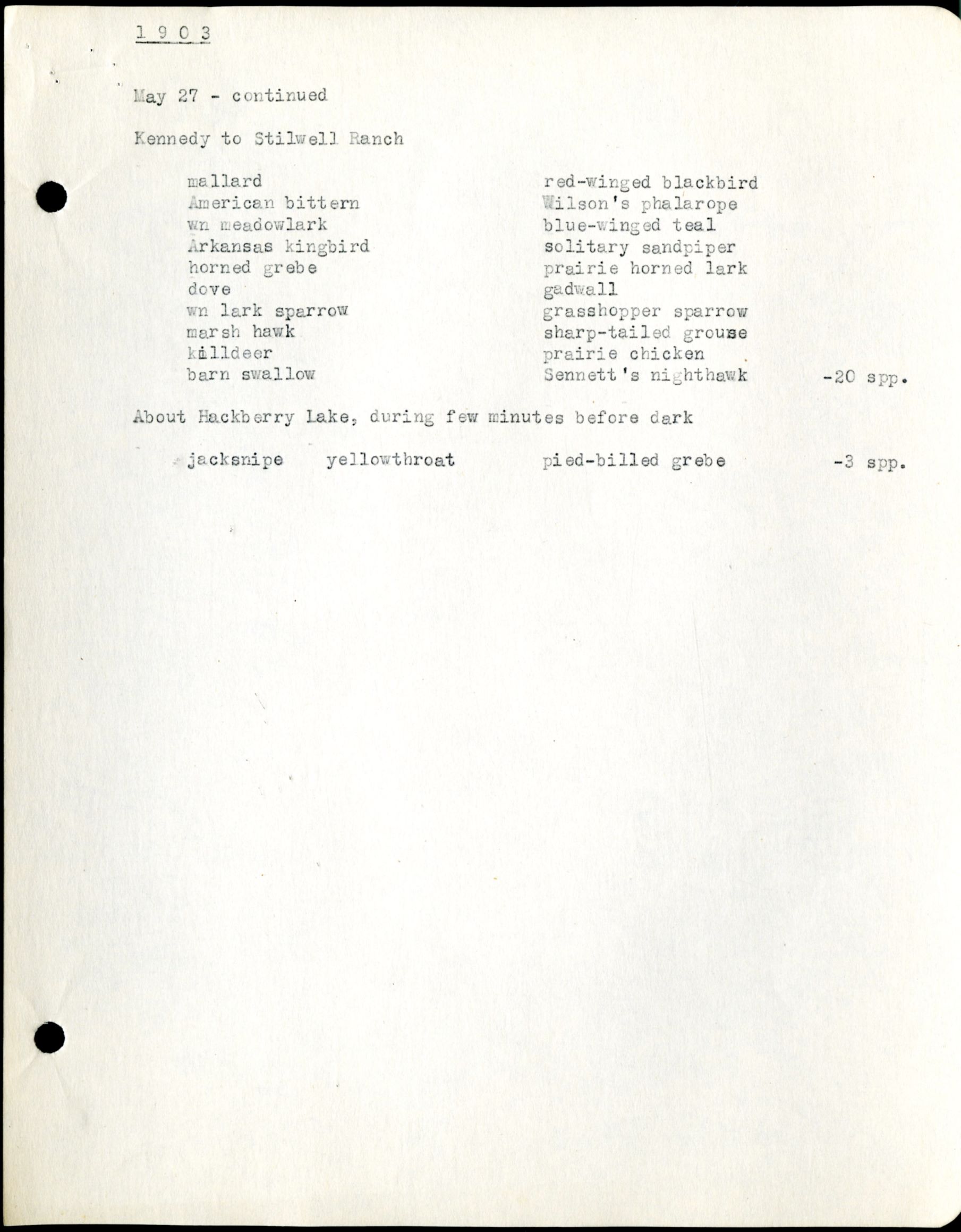 - Cherry County Bird List