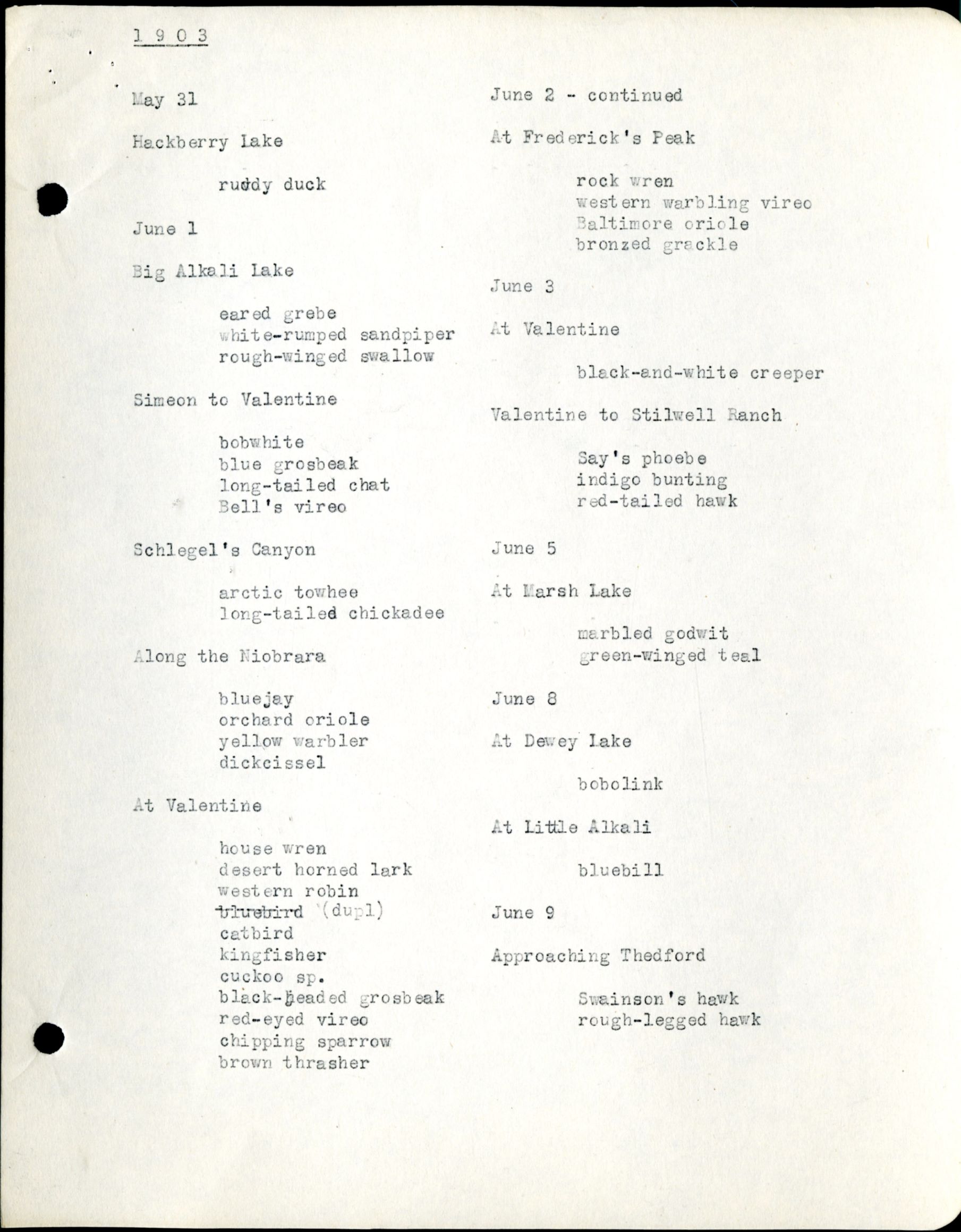 Cherry County Bird List