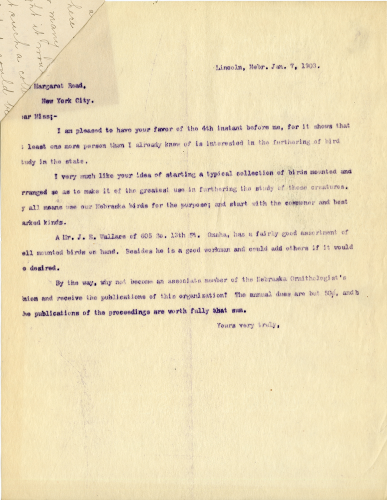 Nebraska Ornithologists' Union Letters
