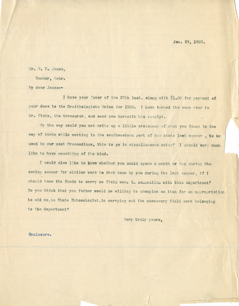 your dues to the Ornithologists Union for 1903. 1 have turned the eave over to i