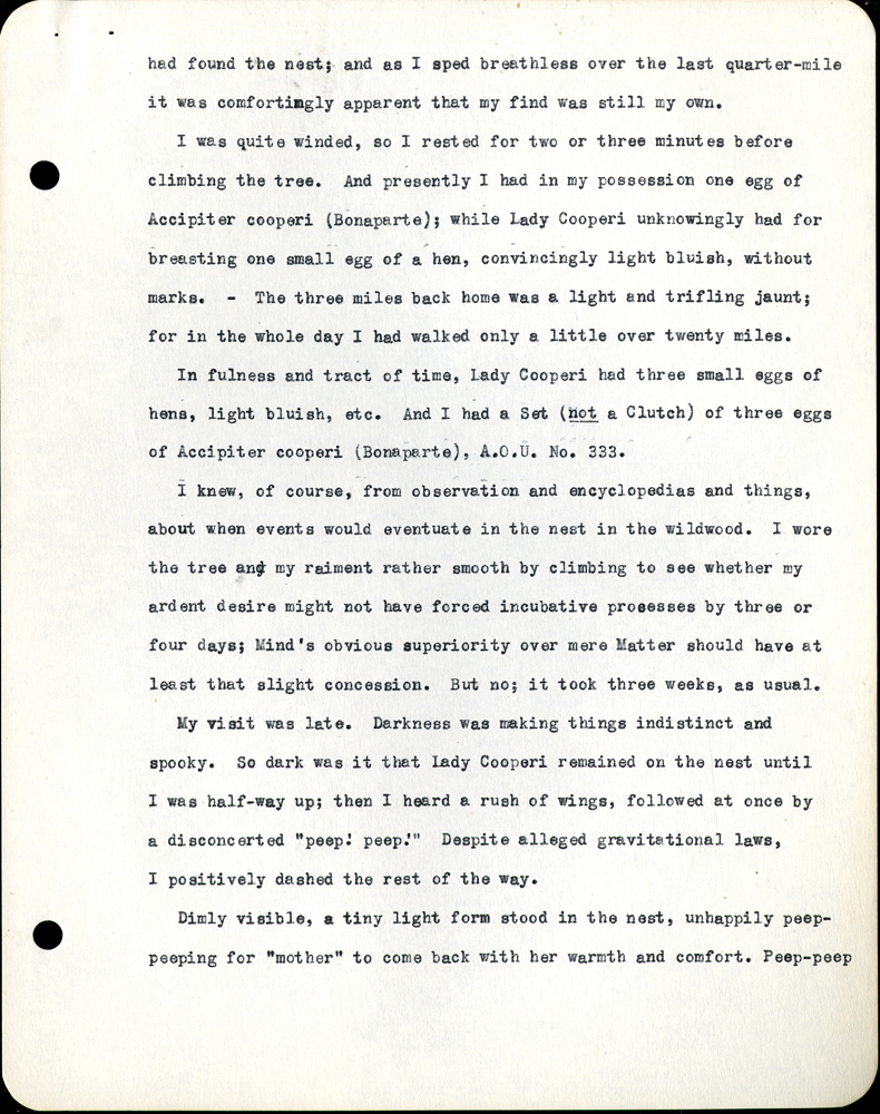 of Accipiter cooperi (Bonaparte), A.0.U. No. 333.