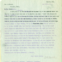 Typescript letter, 1 page, from Lawrence Bruner to A. F. Newell, "I have yours of the 30th of May and had supposed…"