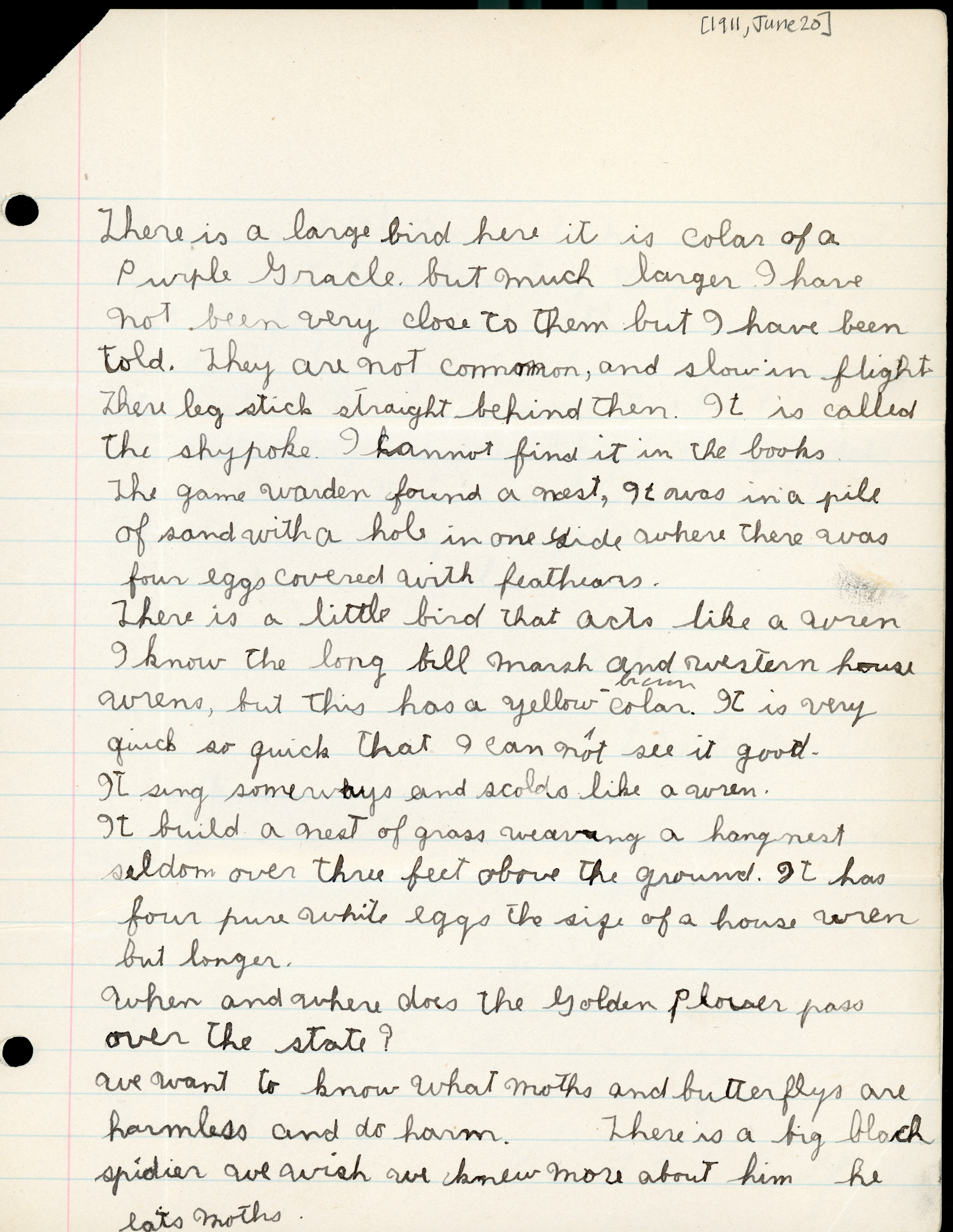 Letter, Charles M. Chalfron to Lawrence Bruner, 1911, June 20