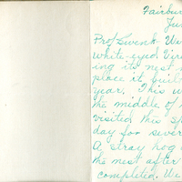 Handwritten letter, 2 pages, from Susie Callaway to Myron H. Swenk, "We found a white-eyed vireo....