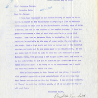 Typewritten letter, 1 page, from Elizabeth Van Sant to Lawrence Bruner, "I have been requested by the Audubon Society of Omaha…"