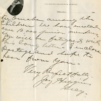 4 Dr. S. R. Towne, President Miss Joy Higgins, Secretary The Omaha Audubon Society. For the Protection of Birds. 544 South Thirtieth Street Omaha, 190 in Omaha among the children. We have enrolled over 10,000 junior members. You will be fatigued with this long letter. I enclose postage and hope to hear from you. Very Respectfully, Joy Higgins Secy.