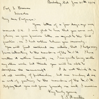 Handwritten letter, 1 page, from J.S. Hunter to Lawrence Bruner, "Your letter of a few days ago…"